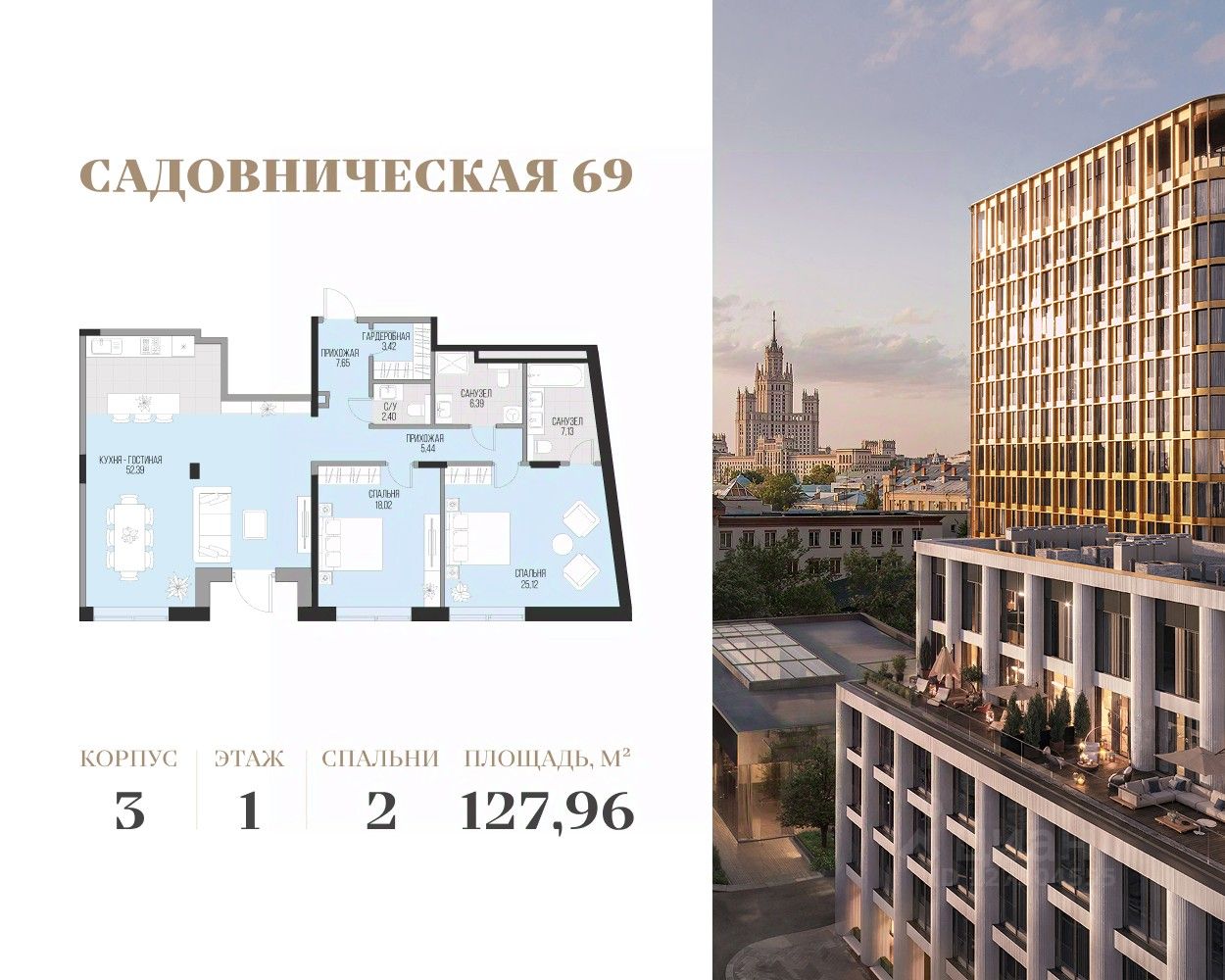 Уникальный адрес в центре Москвы — первая линия Садовнической набережной, золотой остров Балчуг. Тишина и уединенность сочетаются с близостью к главным достопримечательностям и лучшей инфраструктуре Москвы: Кремль, Замоскворечье, деловые центры и рестораны, престижные школы и сады рядом.