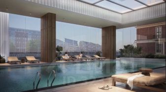 4 клубных корпуса на 1 га приватной территории с закрытым зелёным сквером, и видами на воду. Архитектура в стиле метамодернизма, фасады с медными акцентами, панорамное остекление и высокие потолки. Концепция "тихой роскоши" — натуральные материалы, дизайнерская мебель, продуманные детали.