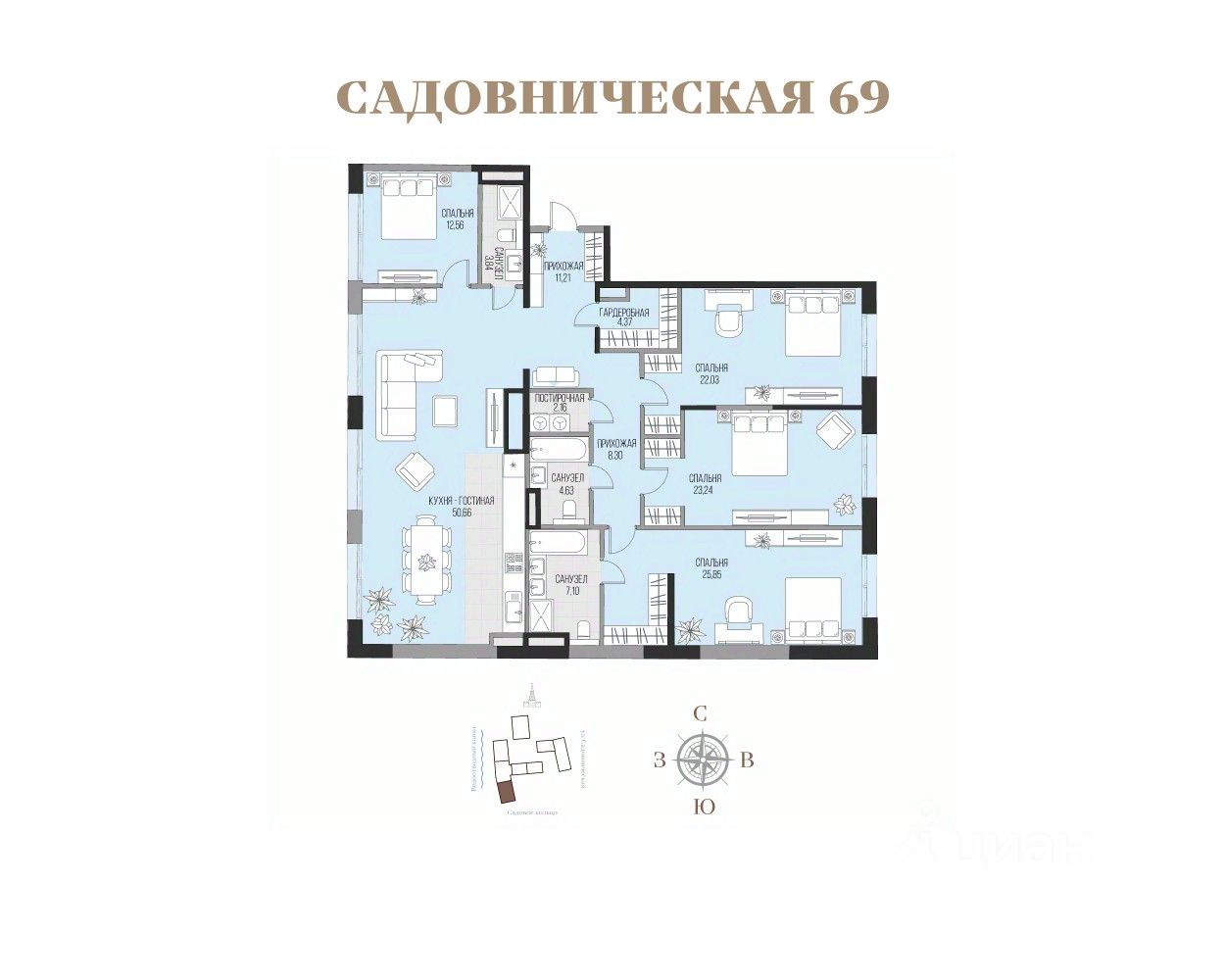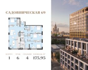Просторная светлая квартира площадью 175,96 кв.м.