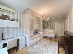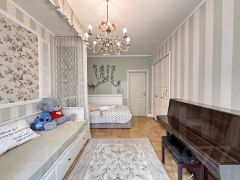 Отделка выполнена профессиональными архитекторами: премиальные напольные покрытия, мебель от ведущих итальянских фабрик, дизайнерские светильники и аксессуары, подчёркивающие статус и уют жилья. Окна выходят во внутренний тихий двор — в квартире сохраняется спокойная и домашняя атмосфера даже в дневное время.