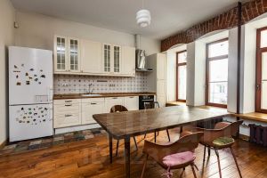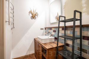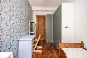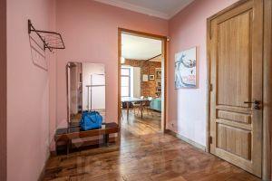Большая прихожая, просторная кухня-гостиная со всей необходимой техникой, три изолированные спальни, два полноценных санузла, гардеробная. Качественный ремонт, множество продуманных деталей, эффектные исторические элементы интерьера создают особую атмосферу, освежающую дух добротного старомосковского дома.