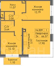 Продается евро-трешка 65,5 м² в ЖК "REPUBLIC" (корпус REDS)