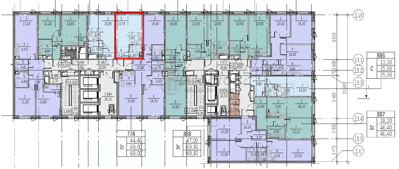 Квартира расположена на 4 этаже 58-этажного кирпично-монолитного дома. Общая площадь — 24,7 кв. м, из них жилая — 14,7 кв. м, площадь кухни — 3,6 кв. м. Окна выходят на улицу.