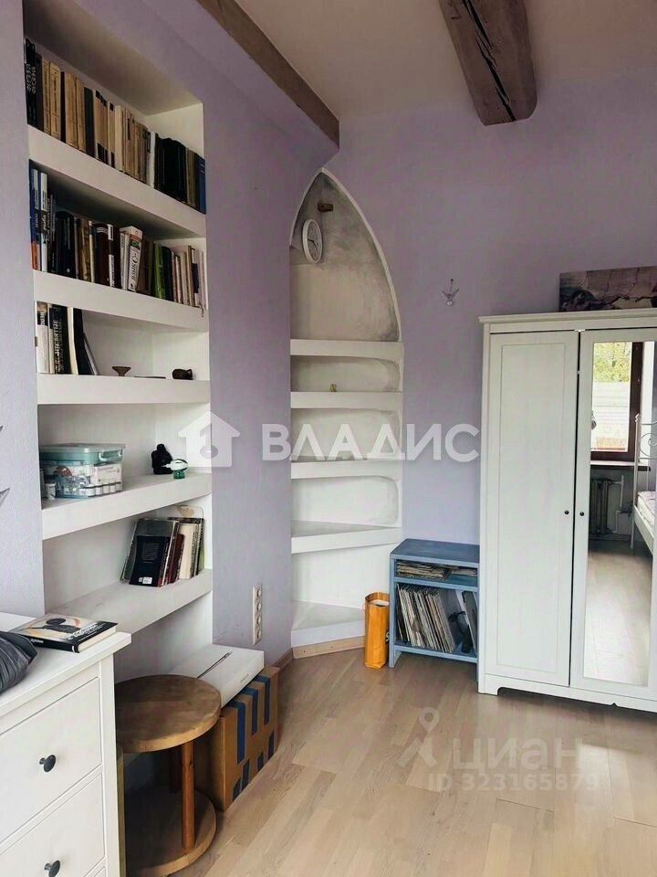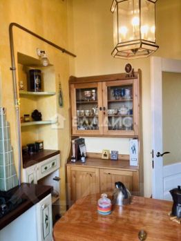 Квартира выполнена в стиле бохо: высокие потолки 3,2 м с деревянными балками, декоративная штукатурка на стенах, паркетная доска, деревянные стеклопакеты с качественной импортной фурнитурой. В гостиной стеллажи из натурального дерева.