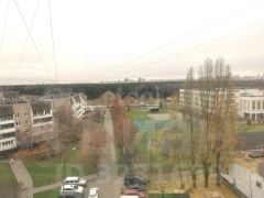 Окна выходят на спокойную территорию школьного и детсадовского дворов.