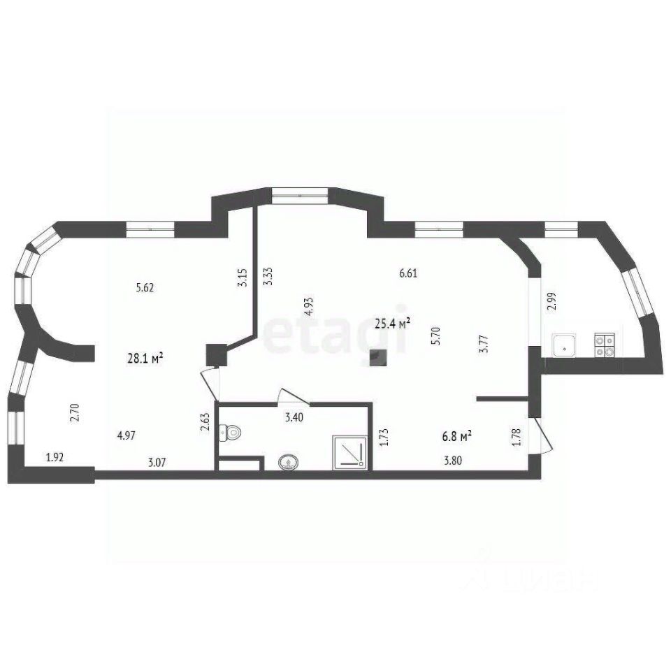 - Квартиру можно трансформировать в трех- или даже четырехкомнатную за счет установки дополнительных перегородок.