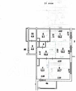 включает в себя три изолированных комнаты (18,3 кв. м; 15,7 кв. м; 17,1 кв. м ) и просторную кухню 14,4 кв м. с выходом на вторую лоджию. В квартире сделан качественный евроремонт. Имеется гардеробная 4,6 кв м и два санузла (8,1кв.м и 2,0 кв. м ). На кухне и ванной полы с подогревом. Окна выходят на западную и северную стороны. Квартира расположена на 18-м этаже 21- этажного монолитного дома, построенного в 2007 году по