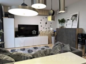 Просторная кухня-гостиная, мастер-спальня с собственной гардеробной и ванной комнатой, вторая спальня, второй санузел. Апартамент полностью меблирован и готов к заселению.