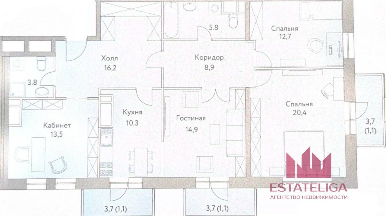 Id 57609. Простор для Вашей Мечты! Роскошная 4-комнатная квартира со свободной планировкой в ЖК Символ!