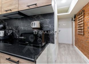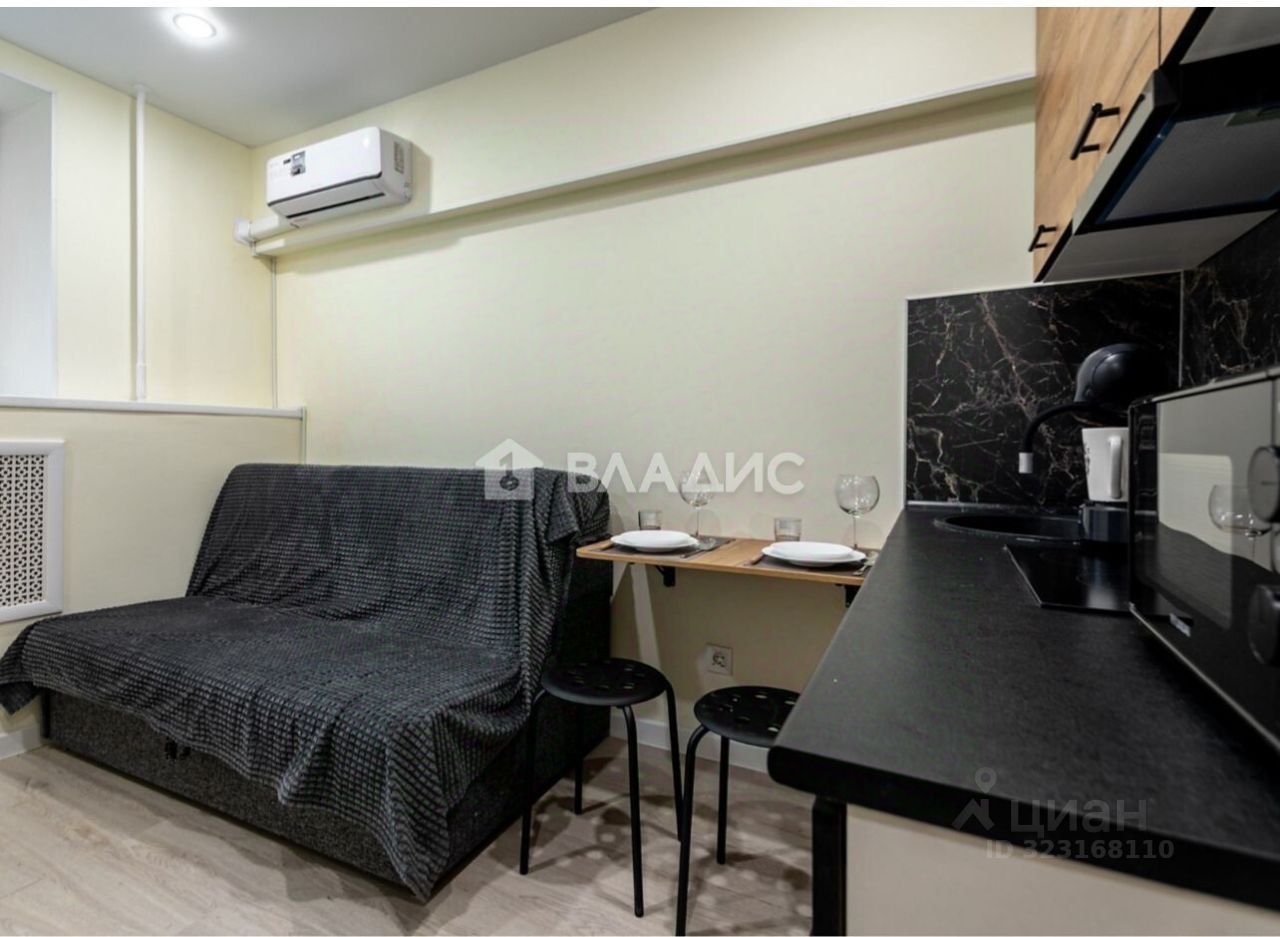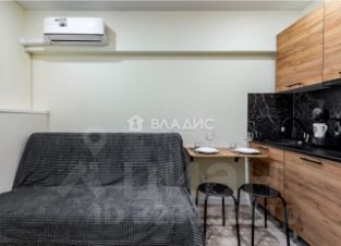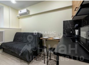 В студии имеются и остается: сплит-система, интернет-ТВ, кухня, вытяжка кухонная встроенная, шкаф, стиральная машина, холодильник, микроволновая печь, кофеварка капсульная, утюг, гладильная доска, пылесос, ковры в прихожей и в комнате, посуда, в общем есть всё для комфортного проживания.