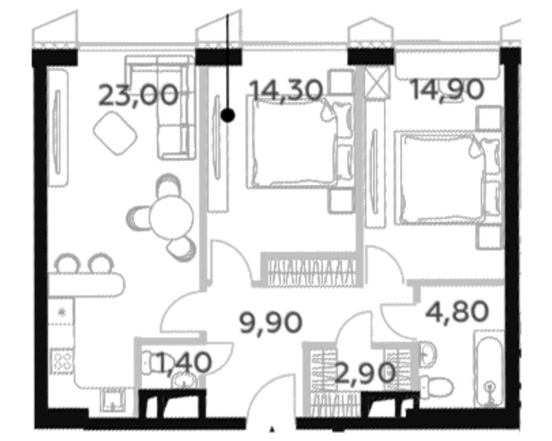 общей площадью 71.2 кв. м, жилая площадь — 45 кв. м, а площадь кухни — целых 23 кв. м. Квартира находится на 25 этаже 51-этажного дома, построенного в 2024 году. Высокие потолки 3.1 метра добавляют ощущение простора и свободы.