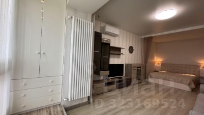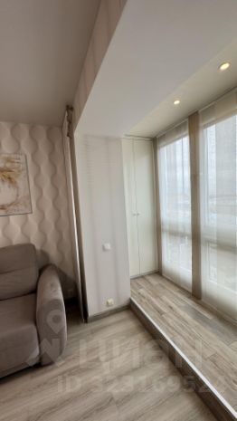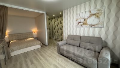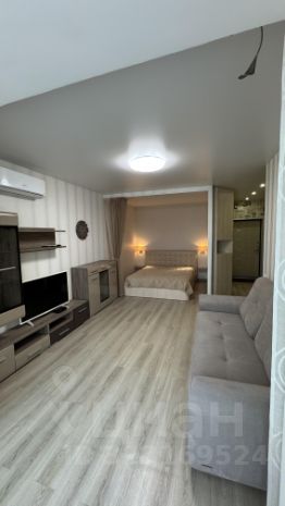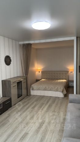 Комната большая ,светлая ,зонированная на 2 зоны : спальню и гостиную.