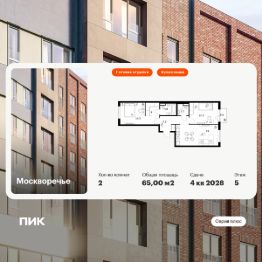 Продаётся 2-комн. квартира площадью 65 кв.м на 5 этаже 12 этажного дома (Корпус 2.3, Секция 3) проекта ПИК Москворечье. Светлый просторный подъезд на уровне земли, функциональная планировка, большие окна, c отделкой.