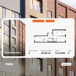 Продаётся 2-комн. квартира площадью 62 кв.м на 2 этаже 16 этажного дома (Корпус 2.3, Секция 5) проекта ПИК Москворечье. Светлый просторный подъезд на уровне земли, функциональная планировка, большие окна, c отделкой.