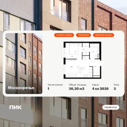 Продаётся 1-комн. квартира площадью 36,2 кв.м на 3 этаже 16 этажного дома (Корпус 2.3, Секция 5) проекта ПИК Москворечье. Светлый просторный подъезд на уровне земли, функциональная планировка, большие окна, c отделкой.