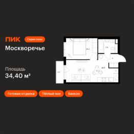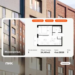 Продаётся 1-комн. квартира площадью 34,4 кв.м на 7 этаже 12 этажного дома (Корпус 2.3, Секция 4) проекта ПИК Москворечье. Светлый просторный подъезд на уровне земли, функциональная планировка, большие окна, c отделкой.