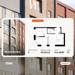 Продаётся 2-комн. квартира площадью 46,5 кв.м на 11 этаже 29 этажного дома (Корпус 2.1, Секция 1) проекта ПИК Москворечье. Светлый просторный подъезд на уровне земли, функциональная планировка, большие окна, c отделкой.