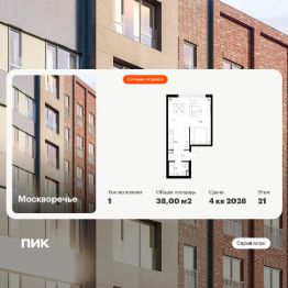 Продаётся 1-комн. квартира площадью 38 кв.м на 21 этаже 29 этажного дома (Корпус 2.1, Секция 1) проекта ПИК Москворечье. Светлый просторный подъезд на уровне земли, функциональная планировка, большие окна, c отделкой.