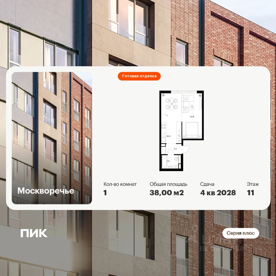 Продаётся 1-комн. квартира площадью 38 кв.м на 11 этаже 29 этажного дома (Корпус 2.1, Секция 1) проекта ПИК Москворечье. Светлый просторный подъезд на уровне земли, функциональная планировка, большие окна, c отделкой.