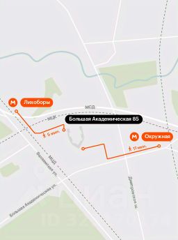 До станции метро Окружная 10 минут пешком, до станции МЦК Лихоборы 5 минут пешком.