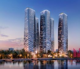 Архитектура от именитого бюро ADM отличается уникальной пластикой фасадов - башни словно парят в воздухе, играя гранями как драгоценные камни. Жилой комплекс состоит из 5-ти небоскребов с home park на закрытой территории и внешней торговой галереей с открытым доступом.