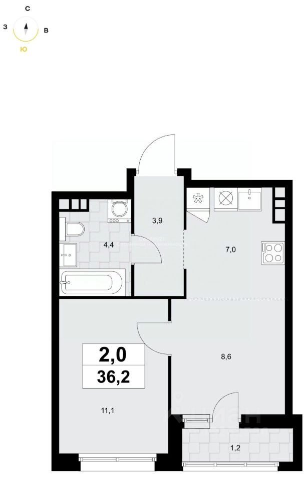 Комната - 11.1 м²