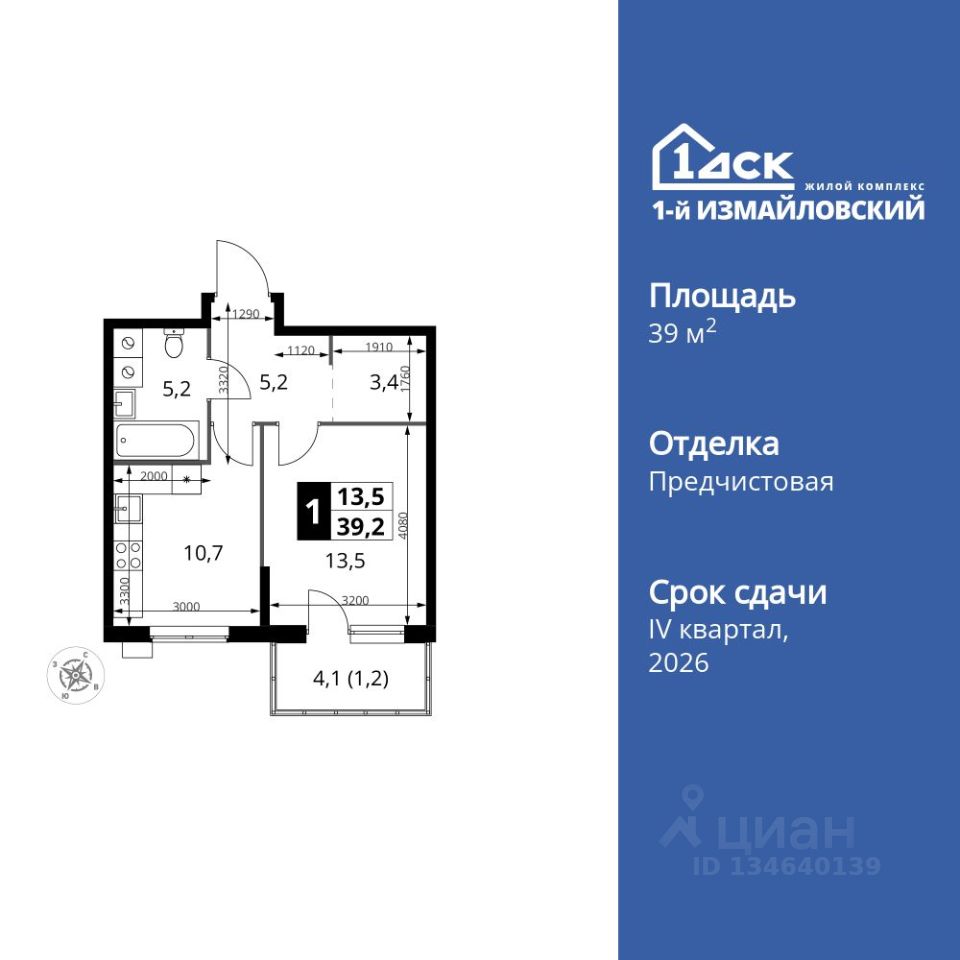 Продаётся 1-к квартира номер 618 общей площадью 39.2 кв.м. на 8-м этаже 15 этажного здания. Отделка Whitebox. Цена с учётом скидки.