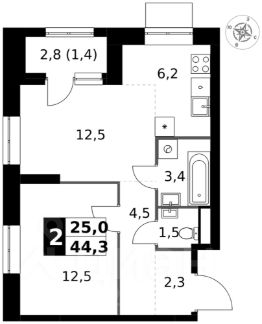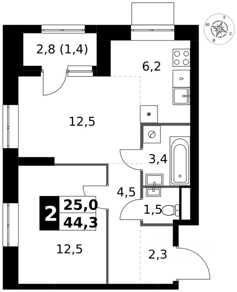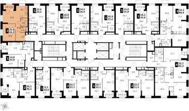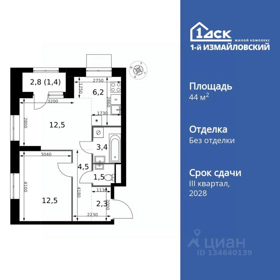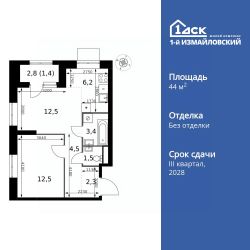 Продаётся 2-к квартира номер 442 общей площадью 44.3 кв.м. на 3-м этаже 32 этажного здания. Без отделки.