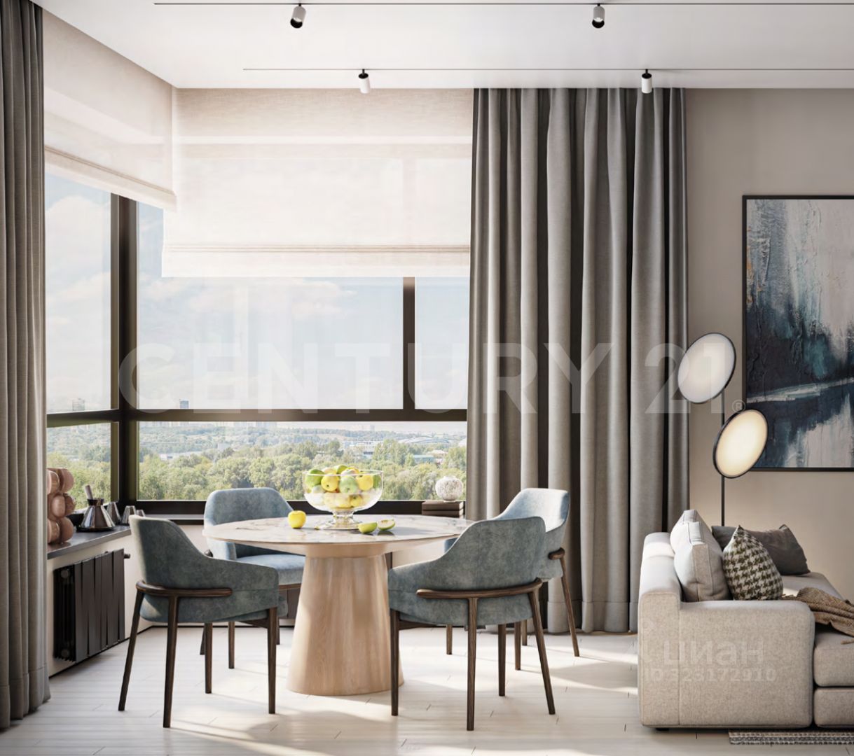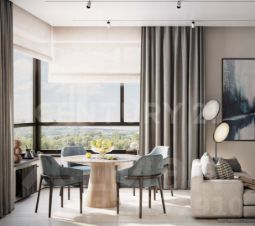 Окна квартиры расположены на две стороны света, за счёт чего в квартире прекрасная инсоляция. Панорамные окна кухни-гостиной и одной спальни ориентированы на юго-западную и юго-восточную стороны света с видами на жилой комплекс. Окна второй спальни ориентированы на юго-восточную сторону с видами на территорию жилого комплекса.