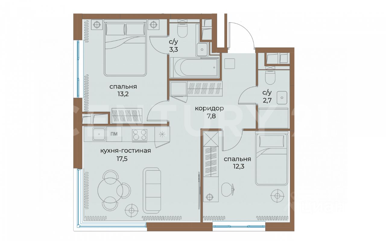 Две спальни (одна из них с собственной ванной и гардеробной)