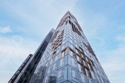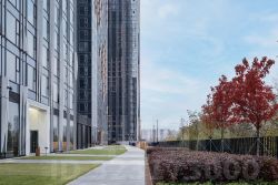 - 13 продуманных корпусов высотой до 54 этажей: архитектурное решение, символизирующее воду, отражающую солнечный свет;