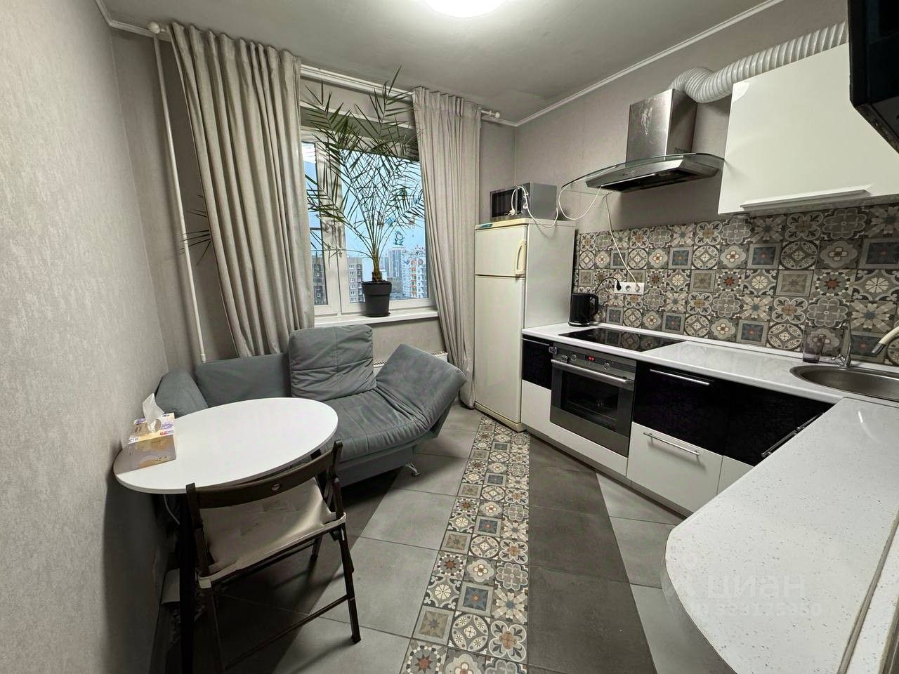 - Вид с балкона в комнате и из кухни на детскую площадку, что актуально для пар с детьми или для любых других покупателей, кто не желает слушать шум от проезжающих машин.