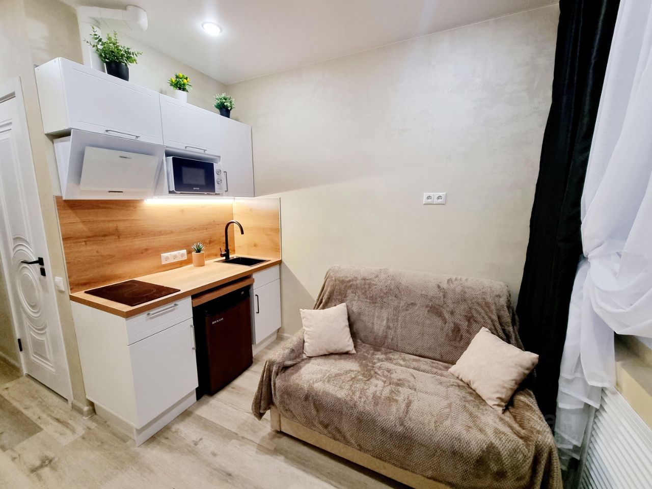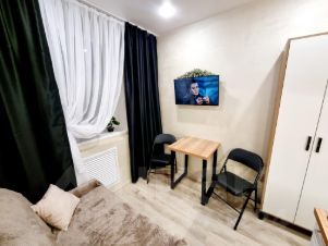 Апартаменты (прописки нет) находятся на втором этаже пятиэтажного кирпичного дома, построенного в 1960 году. Общая площадь студии составляет 12.5 кв. м, жилая — 8.5 кв. м. Высота потолков — 2.5 метра, окна выходят во двор, что обеспечивает тишину и спокойствие.