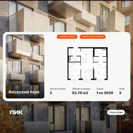 Продаётся 2-комн. квартира площадью 53,7 кв.м на 3 этаже 27 этажного дома (Корпус 4.3, Секция 3) проекта ПИК Амурский парк. Светлый просторный подъезд на уровне земли, функциональная планировка, большие окна, c отделкой.