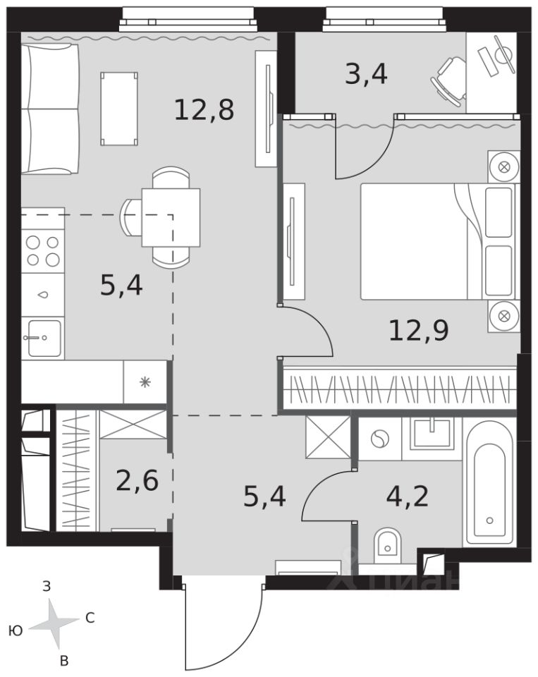 - Линейная планировка - максимальная функциональность и удобство.