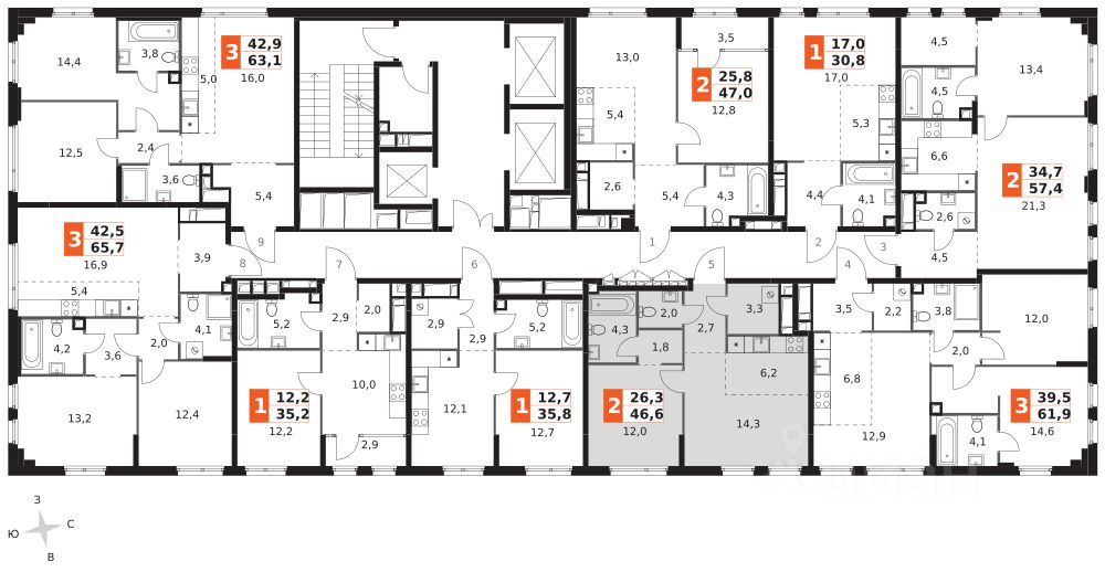 Продаётся 2-к квартира номер 356 общей площадью 46.6 кв.м. на 17-м этаже 27 этажного здания. Без отделки. Цена с учётом скидки.