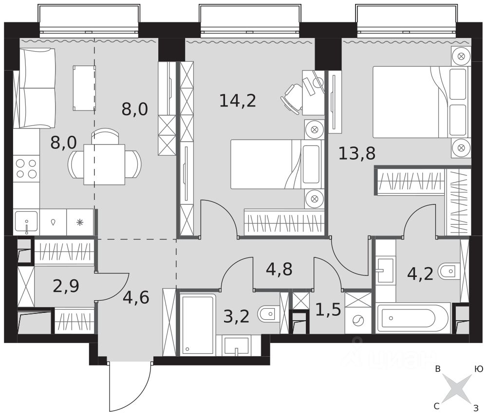 Квартира с предчистовой отделкой (White box). Вам не придется заниматься черновыми и трудоёмкими работы, а чистовую отделку и дизайн - сделайте на свой вкус.