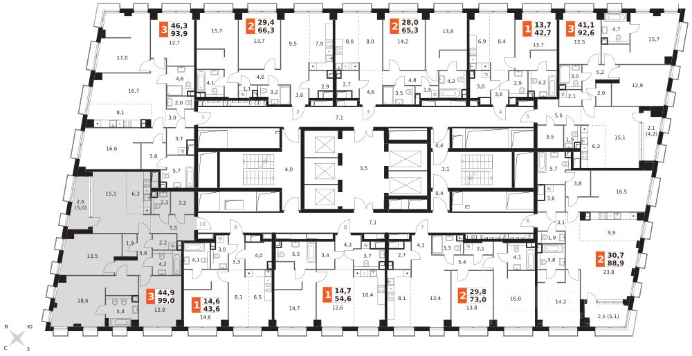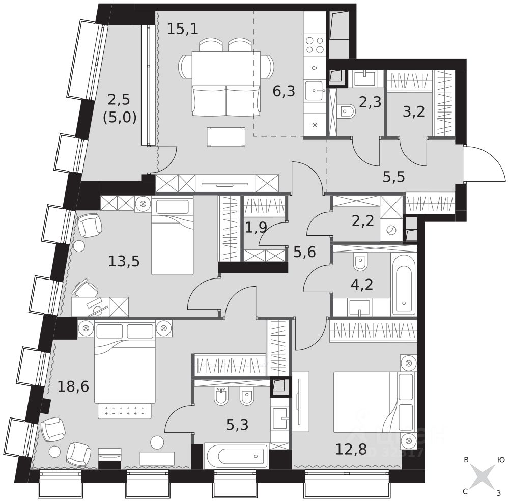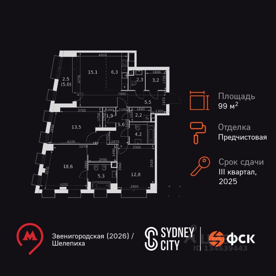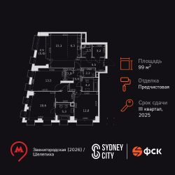 Продаётся 4-к квартира номер 514 общей площадью 99 кв.м. на 23-м этаже 43 этажного здания. Отделка Whitebox. Цена с учётом скидки.