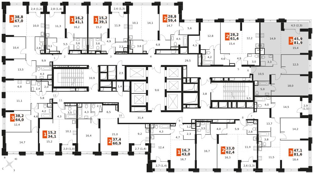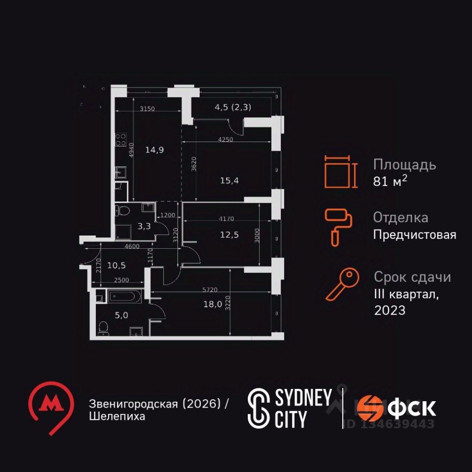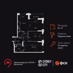 Продаётся 3-к квартира номер 124 общей площадью 81.9 кв.м. на 12-м этаже 43 этажного здания. Отделка Whitebox. Цена с учётом скидки.