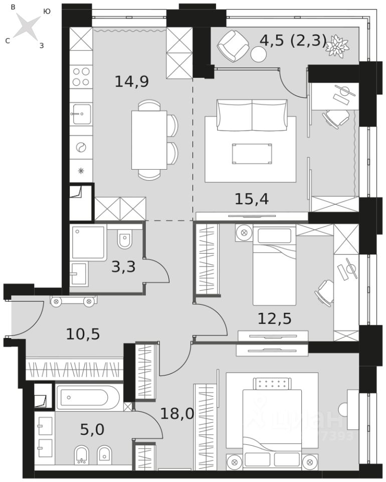 - Мастер-зона с санузлом. Уют и комфорт в одном пространстве.
