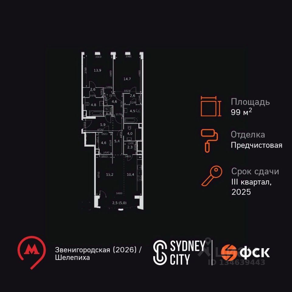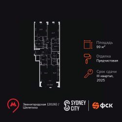Продаётся 3-к квартира номер 44 общей площадью 99.2 кв.м. на 9-м этаже 26 этажного здания. Отделка Whitebox. Цена с учётом скидки.