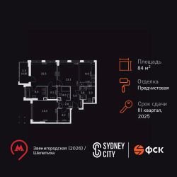 Продаётся 3-к квартира номер 48 общей площадью 84.3 кв.м. на 9-м этаже 26 этажного здания. Отделка Whitebox. Цена с учётом скидки.