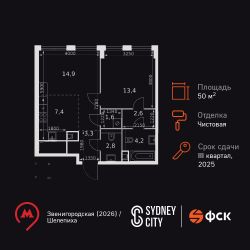 Продаётся 2-к квартира номер 190 общей площадью 50.2 кв.м. на 9-м этаже 26 этажного дома. Чистовая отделка. Цена с учётом скидки!