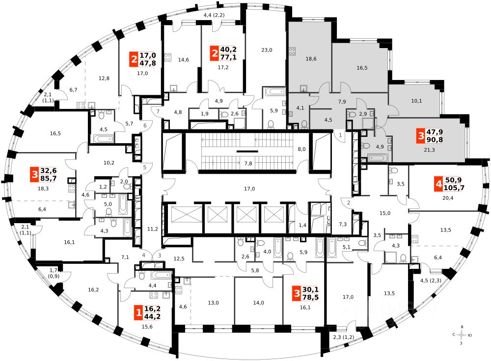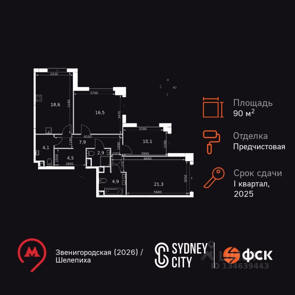 Продаётся 3-к квартира номер 431 общей площадью 90.8 кв.м. на 25-м этаже 44 этажного здания. Отделка Whitebox. Цена с учётом скидки.