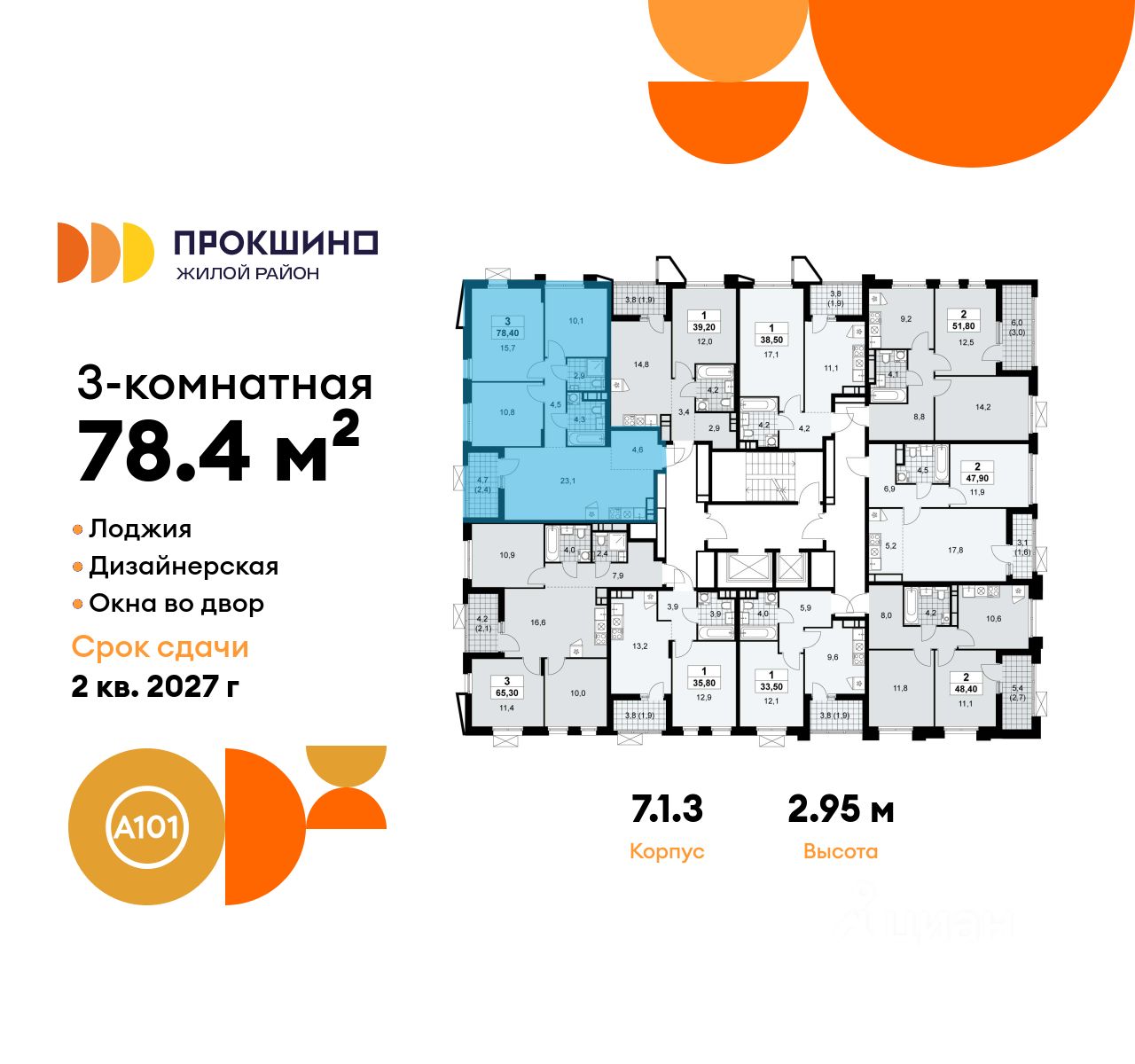 Продается трехкомнатная квартира 473 в новостройке Жилой квартал "Прокшино" по адресу Москва, ТиНАО, Новомосковский АО, Сосенское С/П, пос. Коммунарка. Общая площадь квартиры - 78.40 кв. м., этаж 9 из 17, секция 7. Тип проекта, по которому построен дом - монолит, компания-застройщик - ООО "А101". Стоимость квартиры - 27927648 Р. Срок сдачи - 2 квартал 2027.