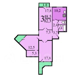 1 лоджия, 2 балкона