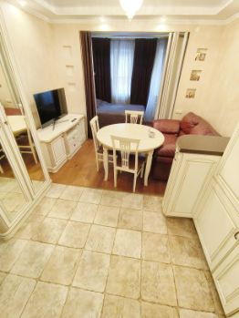 Удобная, продуманная, функциональная планировка квартиры: с зонированием кухни, жилой и спальной зоны и еще одна изолированная комната. В большой комнате - эркер. Из меньшей комнаты - выход на балкон. Балкон застеклен и оборудован. Санузел совмещенный. Просторная прихожая.