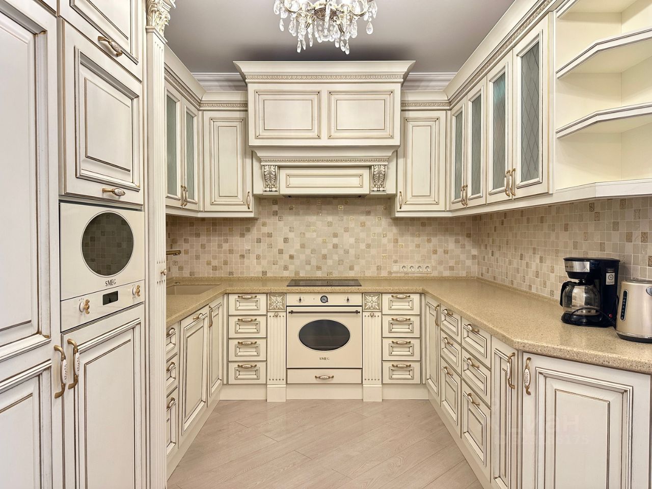 Выполнена премиальная отделка в стиле современной классики с использованием высококачественных и натуральных материалов. Установлен кухонный гарнитур со встроенной бытовой техникой ведущих производителей. Функциональная планировка: просторная кухня-гостиная, 2 спальни, 2 санузла, гардеробная. Панорамные окна ориентированы на две стороны, открываются прекрасные виды на лесопарковую зону.
