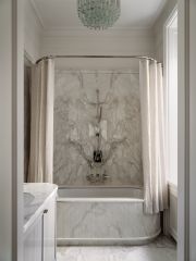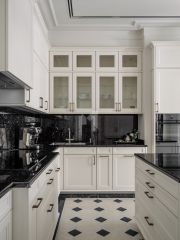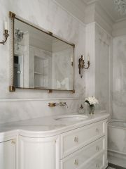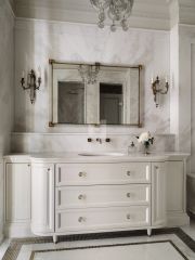 Мастер-спальня с собственной ванной комнатой и двумя гардеробными предлагает уединенный отдых. Вторая спальня с аналогичной планировкой обеспечивает комфорт для членов семьи или гостей. Кабинет, оформленный в классическом стиле, становится местом для работы и интеллектуального уединения. Дополняют картину гостевой санузел, постирочная комната и несколько кладовых и гардеробных помещений.