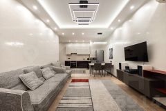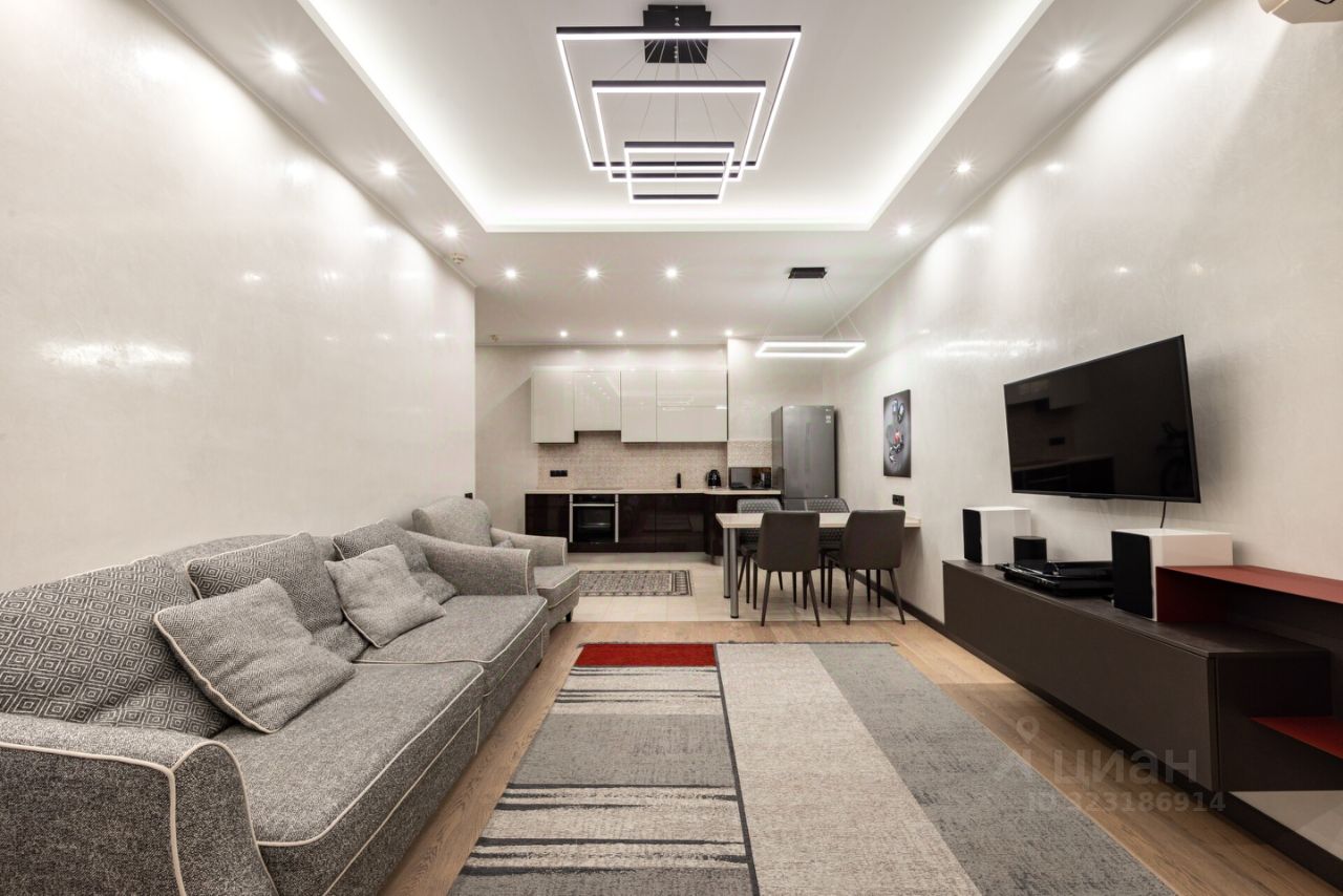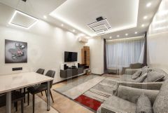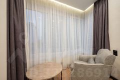 Функциональная планировка включает в себя кухню-гостиную со столовой зоной, изолированную спальню и совмещенный санузел. В квартире выполнен ремонт в нейтральных оттенках из качественных материалов, установлена кухня со встроенной техникой, есть много мест для хранения. Для комфортного микроклимата в течение года в квартире установлены кондиционеры. Окна выходят на юго-восточную сторону, в квартире всегда много света и воздуха.